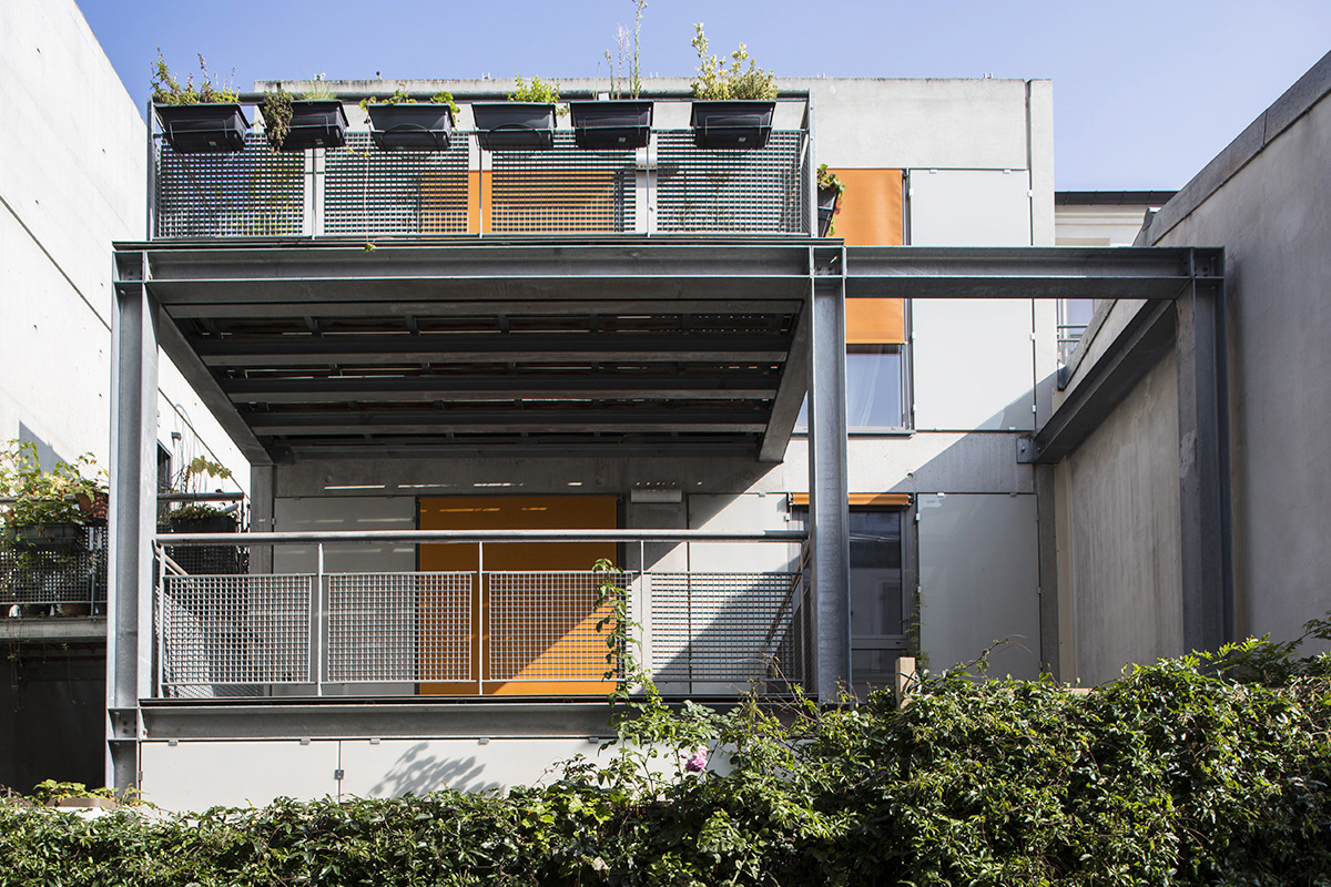 In general, the aim was to give this project a strong vegetal presence. The gardens and planters were planned and delivered planted. Climbing plants were planted at the foot of the facades to allow them to grow above them. In the artists’ studios, stainless steel cables were installed to encourage plant growth.