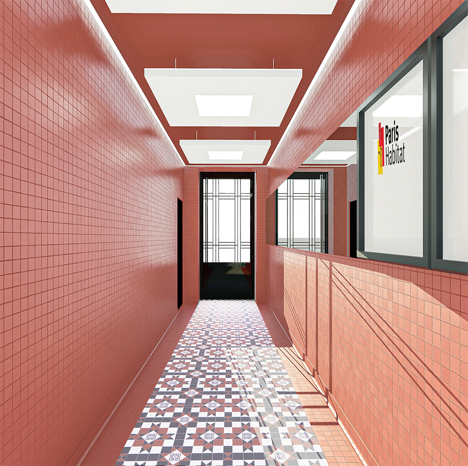 Les halls d’entrée, véritables espaces de transition entre la rue et le logement, font l’objet d’une rénovation respectueuse du patrimoine existant. Les matériaux et finitions sont choisis pour leur durabilité et leur cohérence architecturale, tandis que les boîtes aux lettres sont repositionnées dans les sas d’entrée, accessibles à tous et conformes aux normes postales.