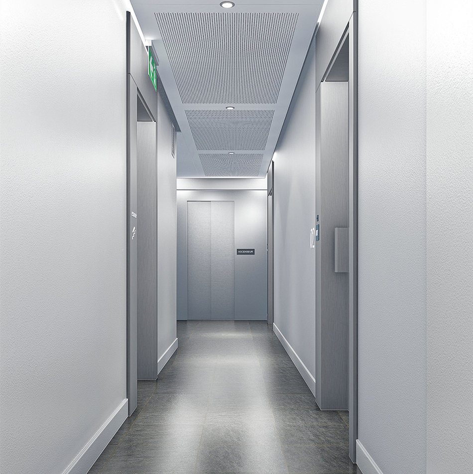 Les parties communes feront l’objet d’une requalification intégrant sécurité, accessibilité et cohérence architecturale. Une attention particulière sera portée au renforcement du contrôle d’accès, à la vidéosurveillance et à la séparation des flux au sein du parking.